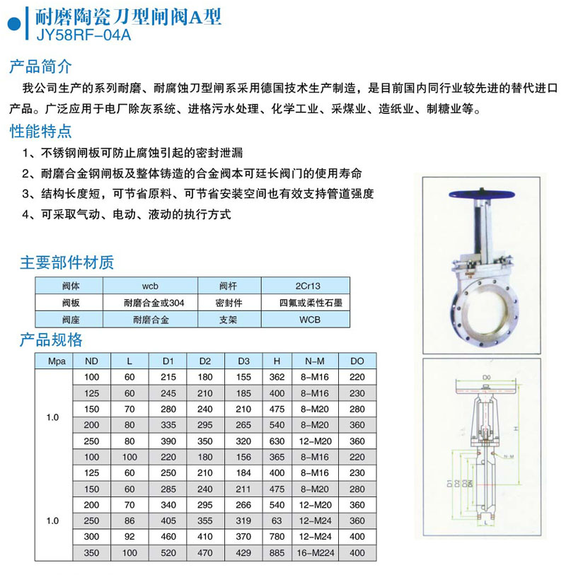 我公司生产的系列耐磨、耐腐蚀刀型闸系列采用德国技术生产制造,是目前国内同行业较先进的替代进口产品。