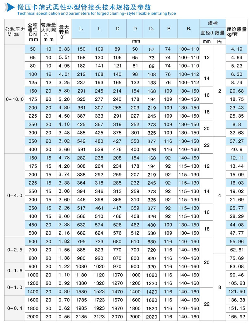 锻压卡箍式柔性肩型管接头KRJ系列、锻压卡箍式柔性肩型管接头KRH系列